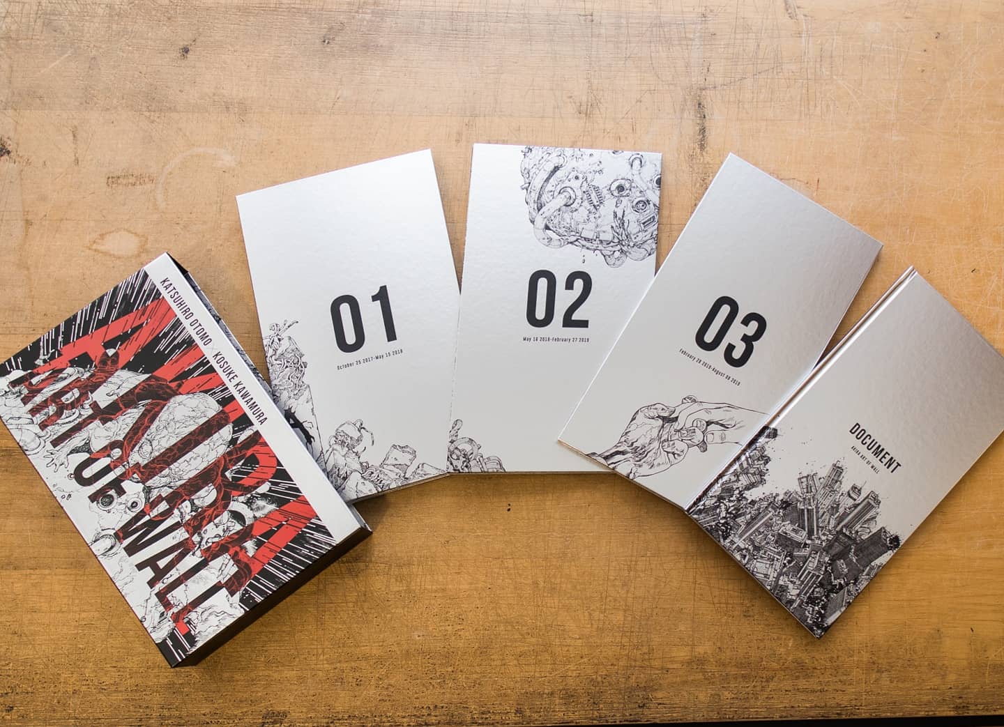 From 2017-2019, the throngs passing through Tokyo’s emblematic Shibuya neighborhood were lucky enough to witness a massive art project. The PARCO department store was closed for renovation, and Katsuhiro Otomo and collage artist Kosuke Kawamura seized on the opportunity to stretch Otomo’s landmark manga AKIRA across the barriers separating the construction site from the bustling nightlife of Shibuya, Tokyo. When the project was completed, it was 2019: the very year the story of AKIRA began. To commemorate this milestone, a silver foil-coated collector’s box presents an exquisite reproduction of Otomo and Kawamura’s work, with the specifications overseen and approved by Otomo-sensei personally. Nearly 75 feet (22.7 meters) of illustrations, speech balloons, and text selected from AKIRA’s six volumes stretch across three accordion-bound volumes. A fourth volume includes an exclusive interview with Otomo and Kawamura, as well as photographs of the original exhibition by award-winning photographer TAKAMURADAISUKE. Rounding out the box is a dramatic, 16 1/2″ x 23 3/8″ poster.