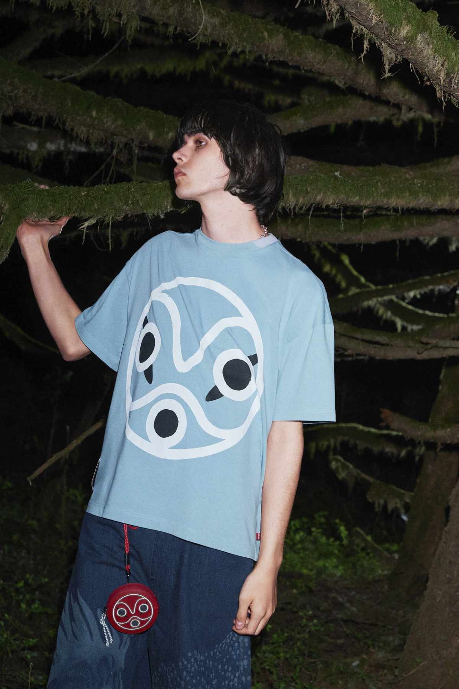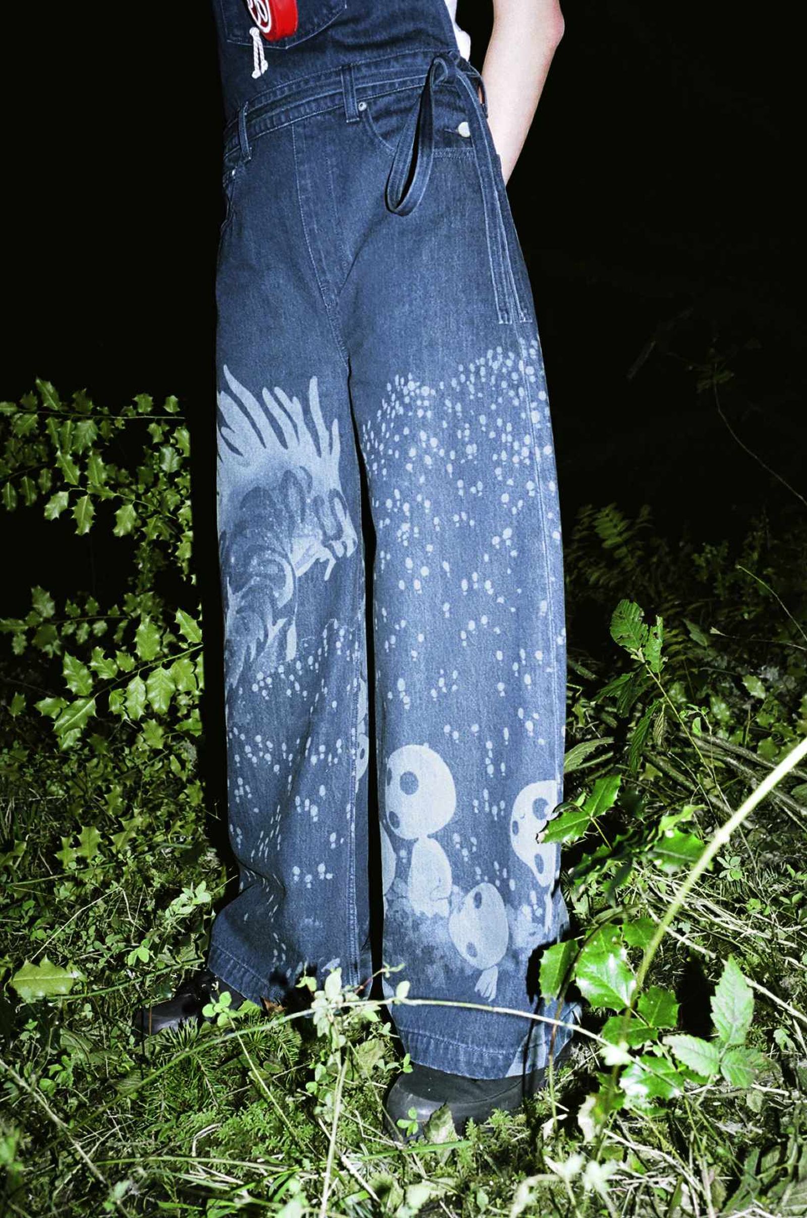 Among the standouts, the San & Wolf Trucker Jacket, the Ashitaka 501 ‘93 Jeans and the San & Moro 501 Shorts flaunt Princess Mononoke‘s forest and sun settings on atmospheric denim. Meanwhile, darker indigo designs, including the Nightwalker Denim Kimono Jacket and the Kodama Denim Overall, tap into the moodiness of the pic’s varying settings. Down the line, graphic T-shirts and hoodies pay homage to the characters themselves, using imagery and language from the film to articulate their inspirations.