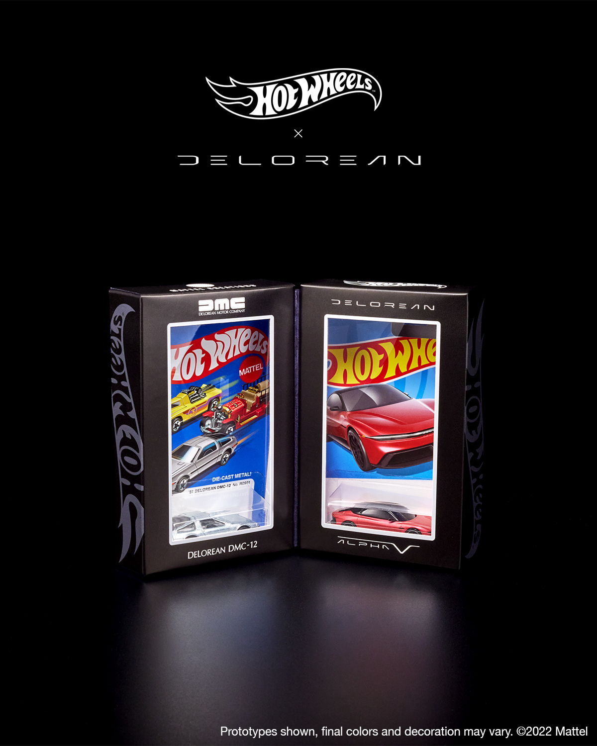 “Our Hot Wheels Design team has reimagined the DMC-12 and Alpha5 in our iconic 1:64 scale diecast format. This Hot Wheels x DeLorean 2-pack tells the story of the iconic carmaker’s evolution and features incredible detail, special packaging, and is available in a very limited edition. Roam the open road with this Hot Wheels DeLorean collectible set. The DMC-12 made its mark in history as a cherished generational icon since the 1980’s. 40 years later, the Alpha5 EV ignites the next vision of the future. This set celebrates the DeLorean duo in 1:64 scale, capturing the spirit of the DeLorean legacy and rebelliously futuristic designs.”