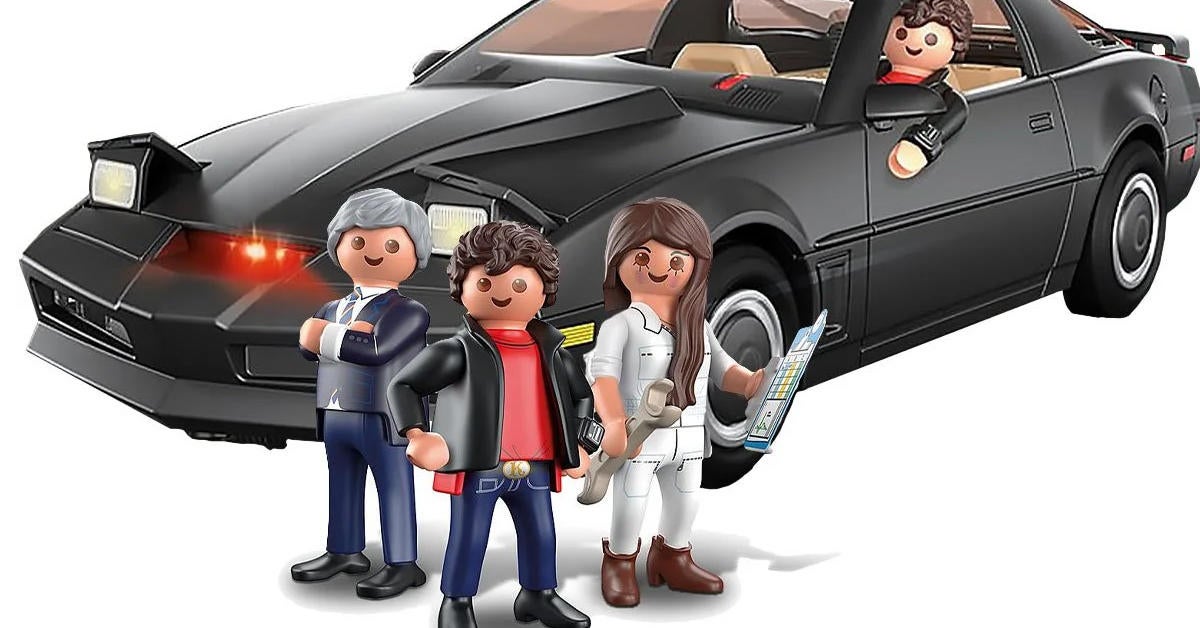 Playmobil is going deep into the ’80s once again with the debut of the 70924 Knight Rider K.I.T.T. vehicle set. The 3-inch scale Pontiac Trans Am vehicle features lights and sound, headlights that go up and down, a rotating license plate, and a removable hood. It also includes the figures of Bonnie Barstow, Devon Miles, and Michael Knight.